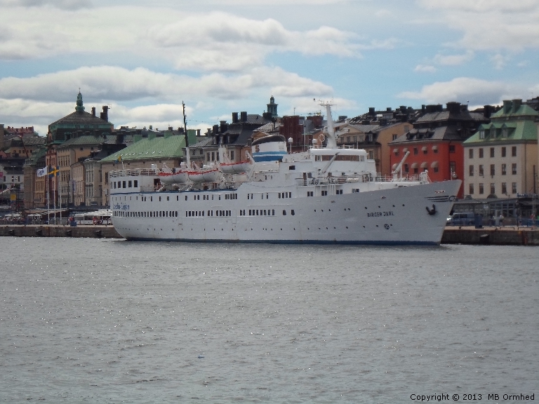 Tillbaka Onedin linjens Birger Jarl, vid Skeppsbron i Stockholm. Fartyget byggdes 1953 på Finnboda varv i Nacka för Rederi AB Svea. Från 1979 har hon gått i Onedinlinjens trafik mellan Stockholm och Mariehamn, först under namnet Baltic Star medan Carebbean Shipping Co Inc i Panama ägde henne och sedan 2002 under sitt nuvarande namn, då Rederi AB Allandia köpte henne. Fartyget hade ursprungligen en ångmaskin men den byttes till en dieselmaskin 1982. Den fungerade dock dåligt och 1989 byttes dieseln ut mot en ny. Fartyget K-märktes 2010. Sommaren 2013 lades rutten ned pga dålig lönsamhet. Fartyget fungerar fn. som vandrarhem vid Skeppsbron i Stockholm. Bilden tagen 2013-07-20.Copyright (C) 2013 MB OrmhedAll publicering utan i förväg inhämtat tillstånd är förbjuden. Detta gäller även återpublicering på Internet. Tillbaka Sidan senast uppdaterad: 2013-07-28 |